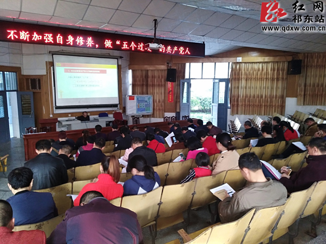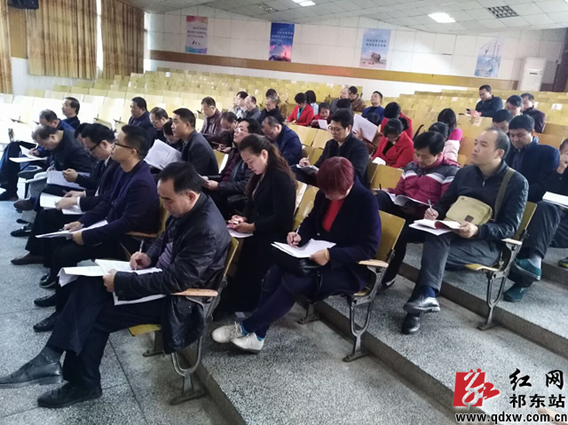 红网祁东分站11月16日讯(通讯员 周先知)按照上级党委的要求,严格落实好“三会一课”制度,11月10日下午,在学校第三会议室,我校开展“党的十九大精神专题辅导”党课学习活动。此次党课由党总支书江伯顺同志主持,县委党校高级讲师周训俭同志主讲,在岗的党员同志参加了活动,并认真地作好笔记。