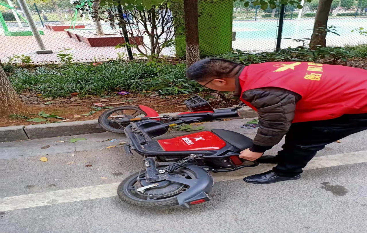 志愿者对道路、小区的垃圾进行清理,劝导行人走斑马线,搀扶老人过马路,整理乱停乱放的共享车等等。他们热情上岗、认真值守,过往行人纷纷点赞。