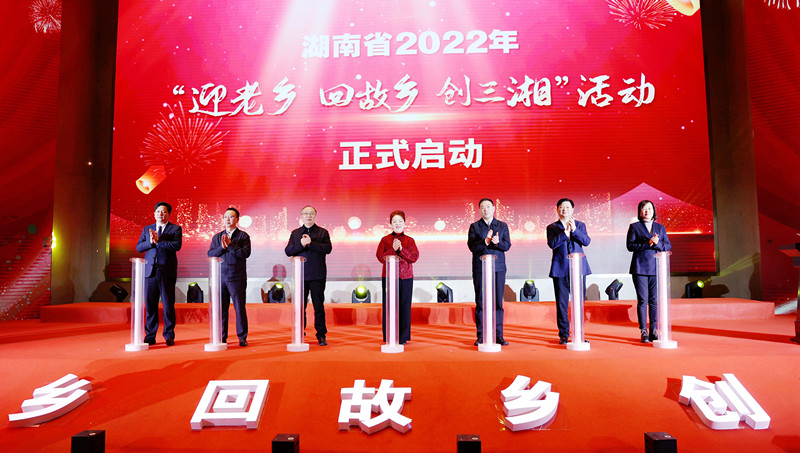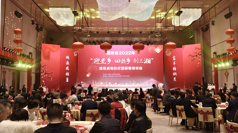 (湖南省2022年“迎老乡、回故乡、创三湘”活动启动仪式暨新春恳谈会现场)