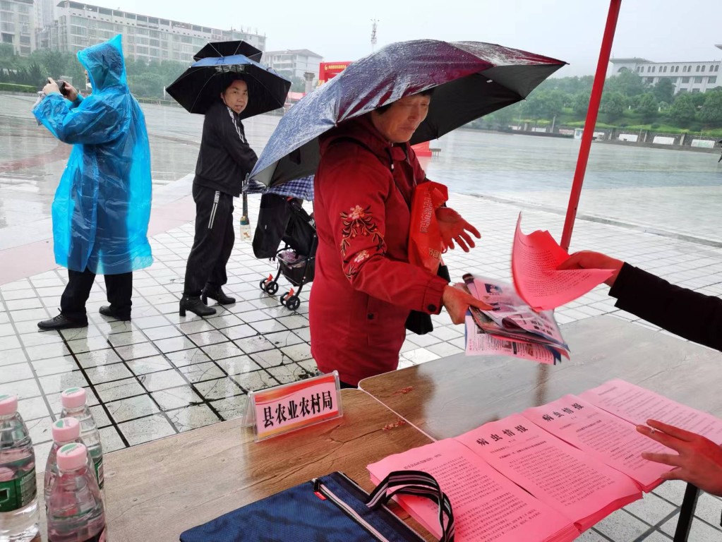 本次宣传活动共持续4个小时,共发放植保法规、病虫情报和二化螟绿色防控技术、草地贪夜蛾防控技术以及农业防灾和安全生产等资料33000份,手册1100份,现场解答群众提问200人次,县人民政府分管农业副县长周新生亲临现场冒雨进行了慰问,同时对病虫防治和农业生安全提出强调,要求县农业部门加强联合监查,确保全县农业生产和人民生活安全。(刘新民)