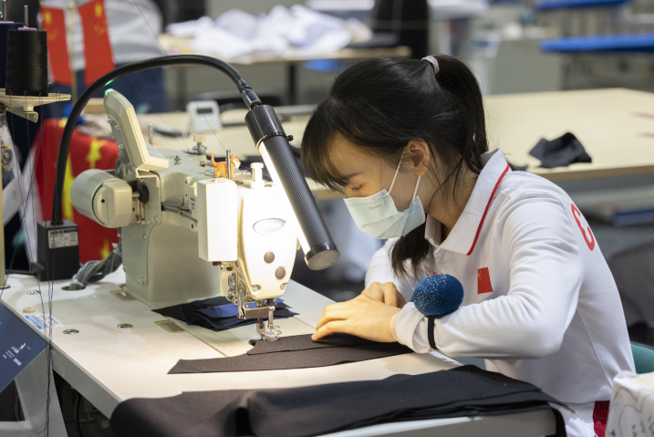 2022世界技能大赛特别赛时装技术项目共设4个考核模块,分4天举行,选手要在规定时间内,根据现场提供的材料和设备设施,按照比赛要求,完成服装的设计、打板、制作等任务。