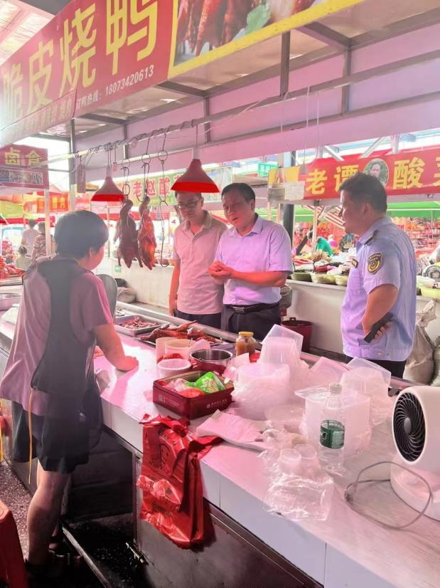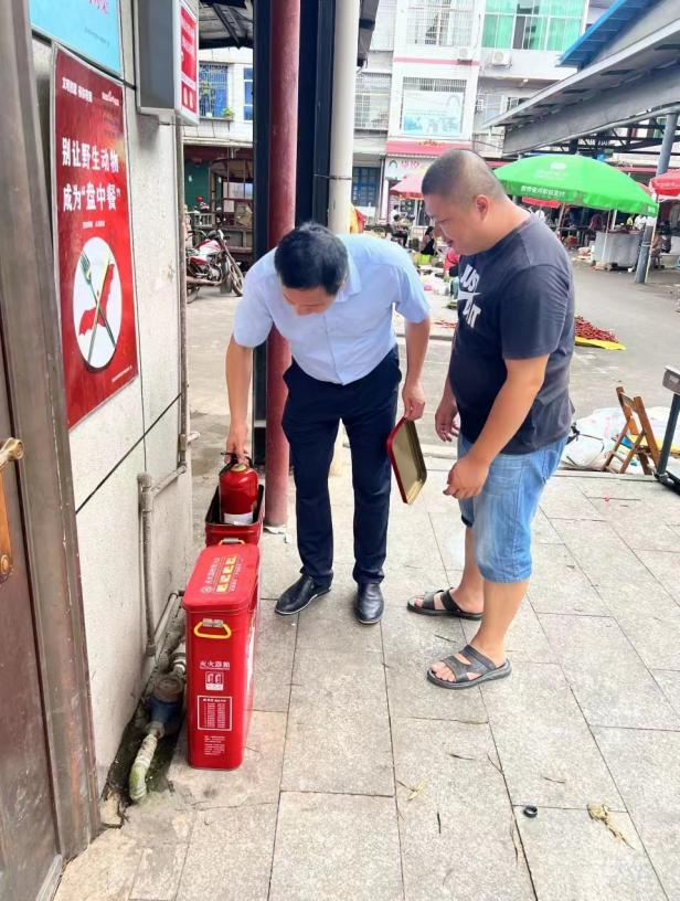 为进一步建设标准化市场,坚决守住市场建设领域不发生重大安全事故的底线,为群众生活营造安全稳定的市场环境,7月19日,湖南省商务厅市场建设处二级调研员杨辉前来我县督导市场建设安全生产工作,在祁东县商务局副局长龙飞雄的陪同下,冒着酷暑前往县城东、城西、花屋三家农贸市场进行现场督查督导。