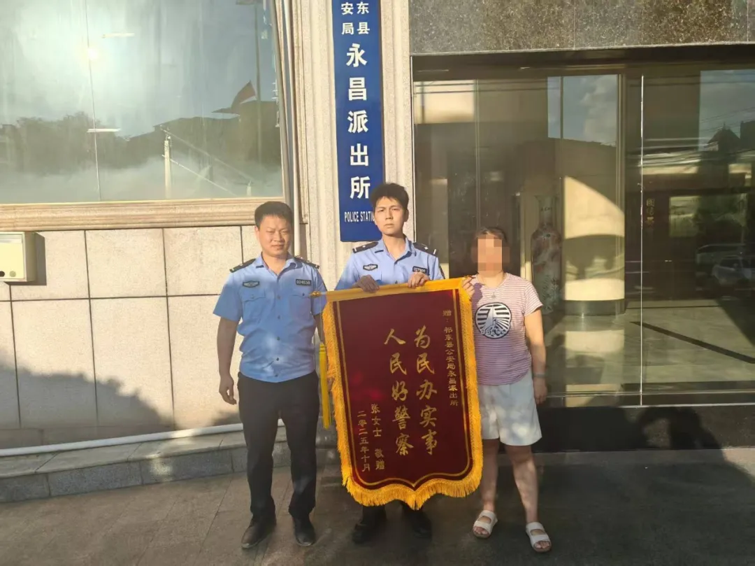 这面鲜红的锦旗,源于一起发生在今年8月的盗窃案件。2025年8月18日,永昌派出所接到张女士报警,称其停放在县城某烧烤店附近的白色轿车内4500元现金被盗。群众利益无小事。接警后,永昌派出所立即组织警力赶赴现场。祁东县公安局对此案高度重视,迅速指令相关业务部门提供支持,力争快速侦破,及时为群众挽回经济损失。