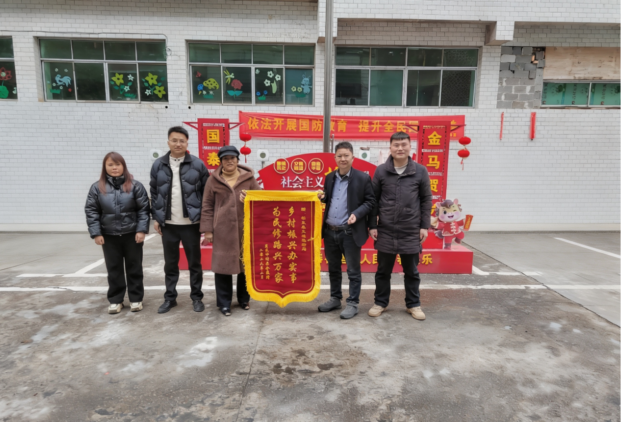 2月11日,凤歧坪乡韮菜坪村村委会将一面印有"乡村振兴办实事 为民修路兴万家"的锦旗送到祁东县交通运输局,感谢该局及驻村工作队真情帮扶、为民解忧。