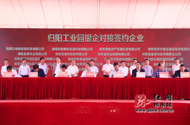 据悉,本次活动招商引资集中签约项目11个,总投资42.7亿元;县内8家金融机构与19家企业签约合作,签约金额41.06亿元;本次集中开工的16个重点项目为灵官风电场建设项目、建汉铝建材生产线建设项目、志达电子玩具制造生产线建设项目、归阳工业园城市综合体建设项目、祁洲新能源汽车充电站建设项目、祁东港归阳港区一期工程建设项目、俊宇生态农业乡村旅游建设项目、黄花菜产业园综合服务平台建设项目、畜禽粪污资源化利用整县推进建设项目、公共交通站场建设项目、归阳工业园基础设施建设项目、祁东县城乡建设用地增减挂钩建设项目、白地市220KV输变电工程建设项目、祁东县永昌芙蓉学校建设项目、祁东县城区排水防涝工程(沿江渠改造)项目、110KV变电站建设项目。16个项目总投资39.35亿元,年度计划投资18.25亿元,其中产业项目8个,基础设施项目6个,公益项目2个。