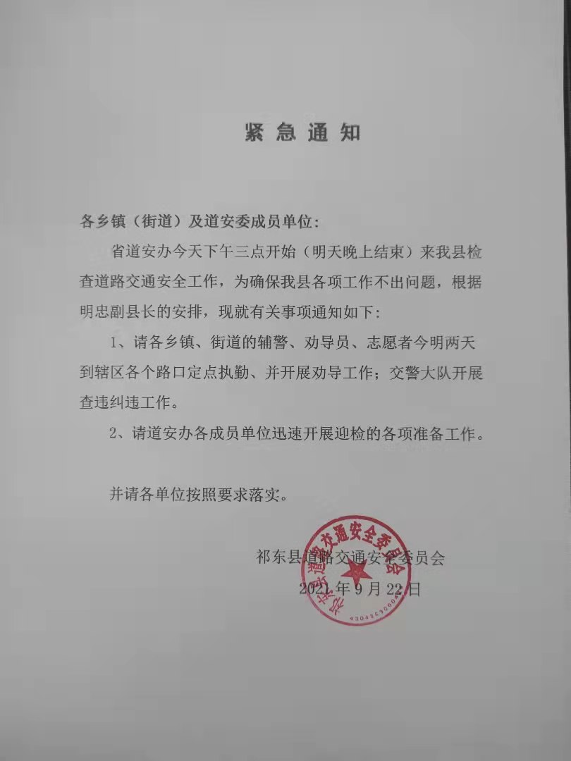鸟江镇检查通知