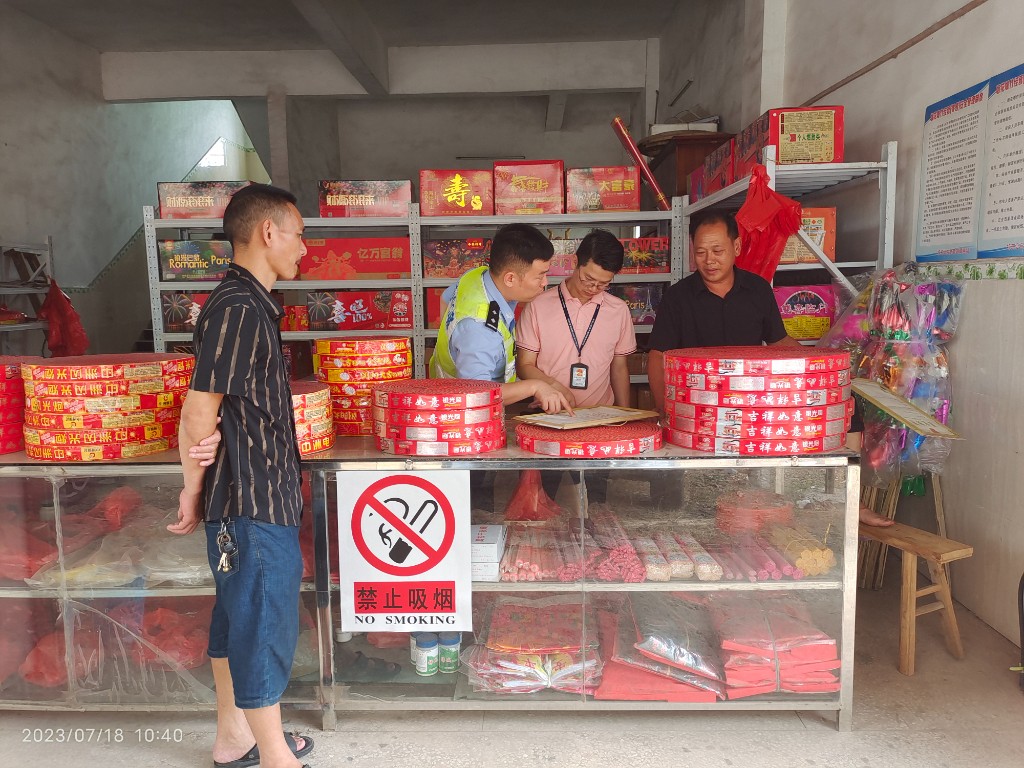 “请出示一下你们零售烟花爆竹的各项手续、证件,消防设施在哪儿,我们也要检查一下……”在各个烟花爆竹零售店,工作人员一一查看了店内烟花爆竹销售各项手续是否齐全、是否持有安全培训资格证、消防设施配备是否有效合格、经营品种是否严格经过审批,存放地点和数量是否符合有关要求等,并通过签订责任书的方式,进一步压实零售户的安全责任。