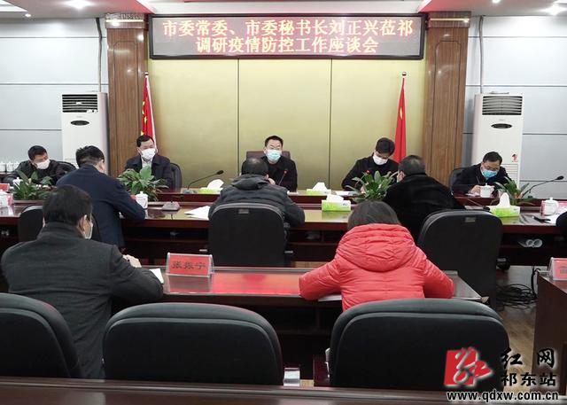 刘正兴对我县新冠病毒防疫工作给予了充分肯定,认为县委县政府立场坚定,反映迅速,调度指挥有力,工作务实有效果。刘正兴强调,新冠病毒防疫工作第一阶段虽然取得了成效,但仍然不能麻痹大意、掉以轻心,要继续排查隐患,对重点人员进行严格检查;目前,要牢牢把握继续抗击疫情和复工复产两个重点,在复工复产过程中,对于外来人员,特别是武汉周边人员,一定要先隔离十四天,对发热门诊的发热人员,要快速准确地确诊好。要做好居民社区和归阳工业园区的疫情防控工作,加强对疫情防控的宣传舆论,实行24小时值班制度,发现情况及时处理;要对照中央省市相关文件精神,严格落到实处,对复工复产企业的工作人员进行全员筛查,确保祁东不出现颠覆性疫情,确保祁东社会经济秩序迎头赶上。