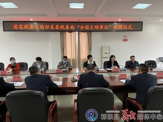 祁东县融媒体中心4月13日讯(记者:陈方志、周云云)13日,国家税务总局祁东县税务局举行“全国文明单位”授牌仪式,市委宣传部副部长、市文明办主任谭春兰与市税务局党委书记、局长李昕共同为县税务局授牌。县委常委、县委宣传部部长邹凌云主持授牌仪式。