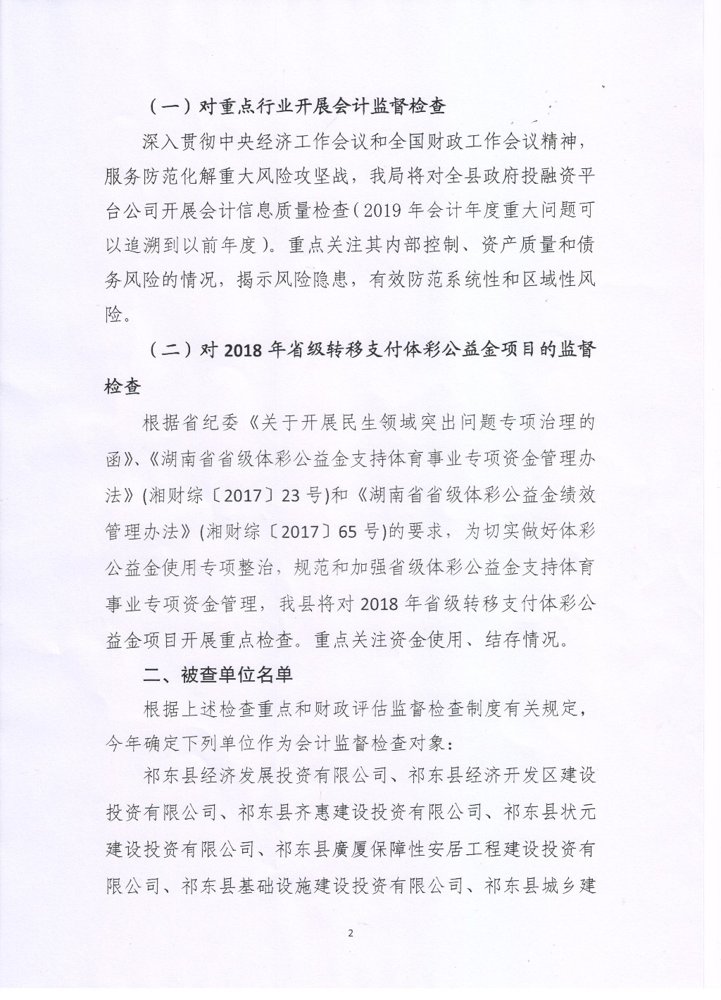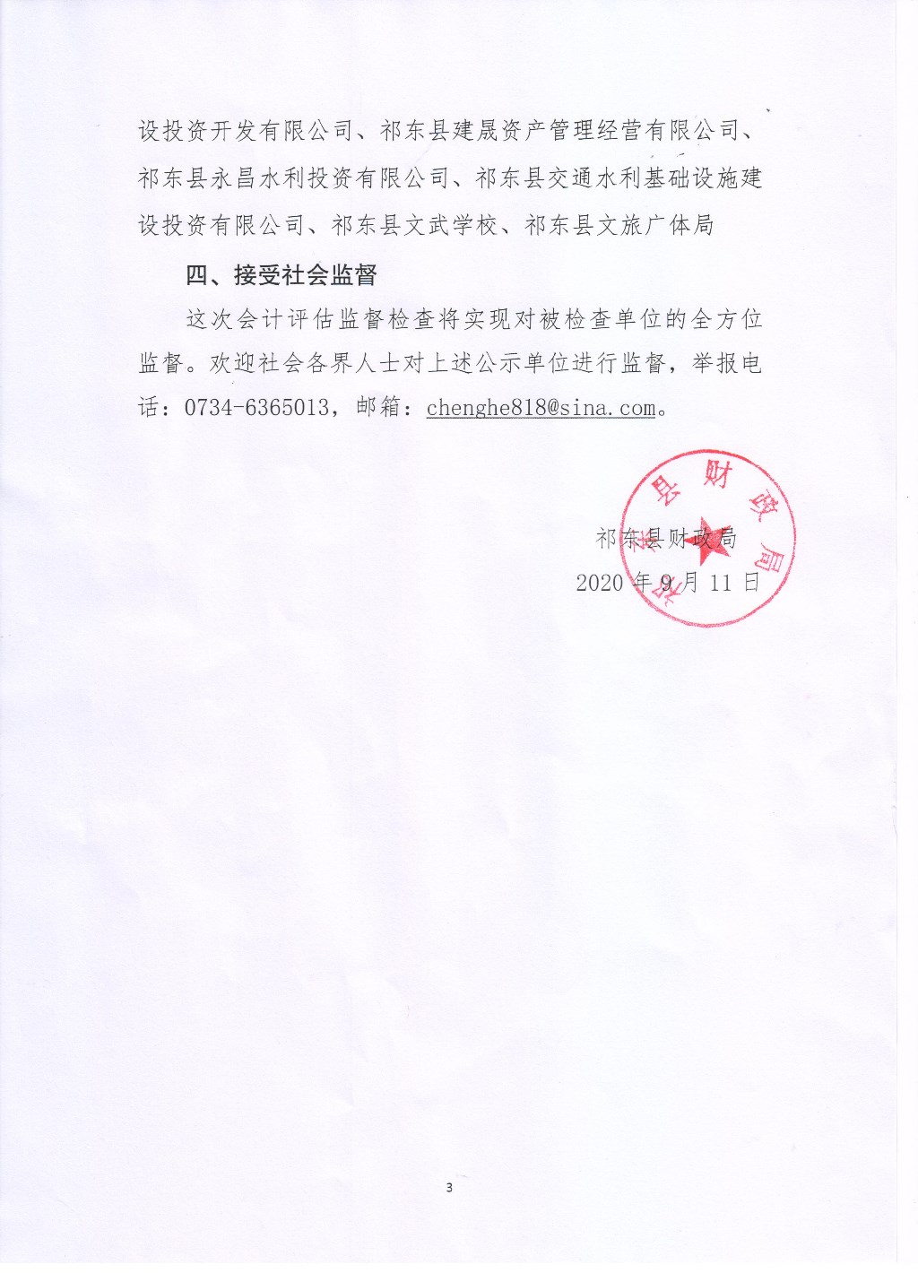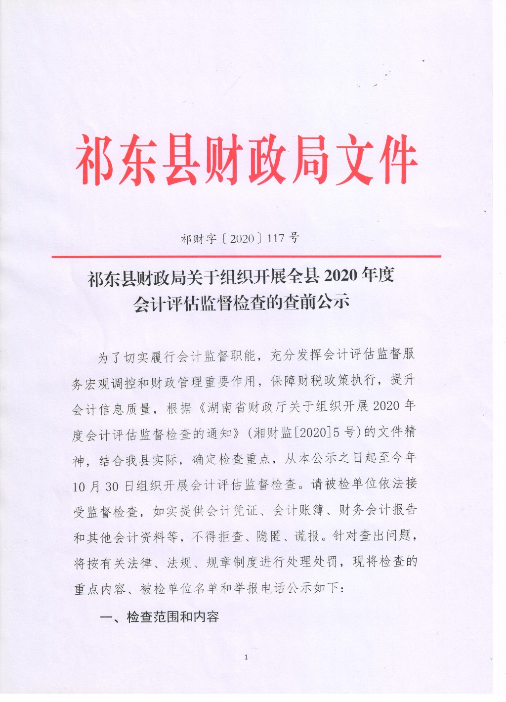 祁东县财政局关于组织开展全县2020年度会计评估监督检查的查前公示