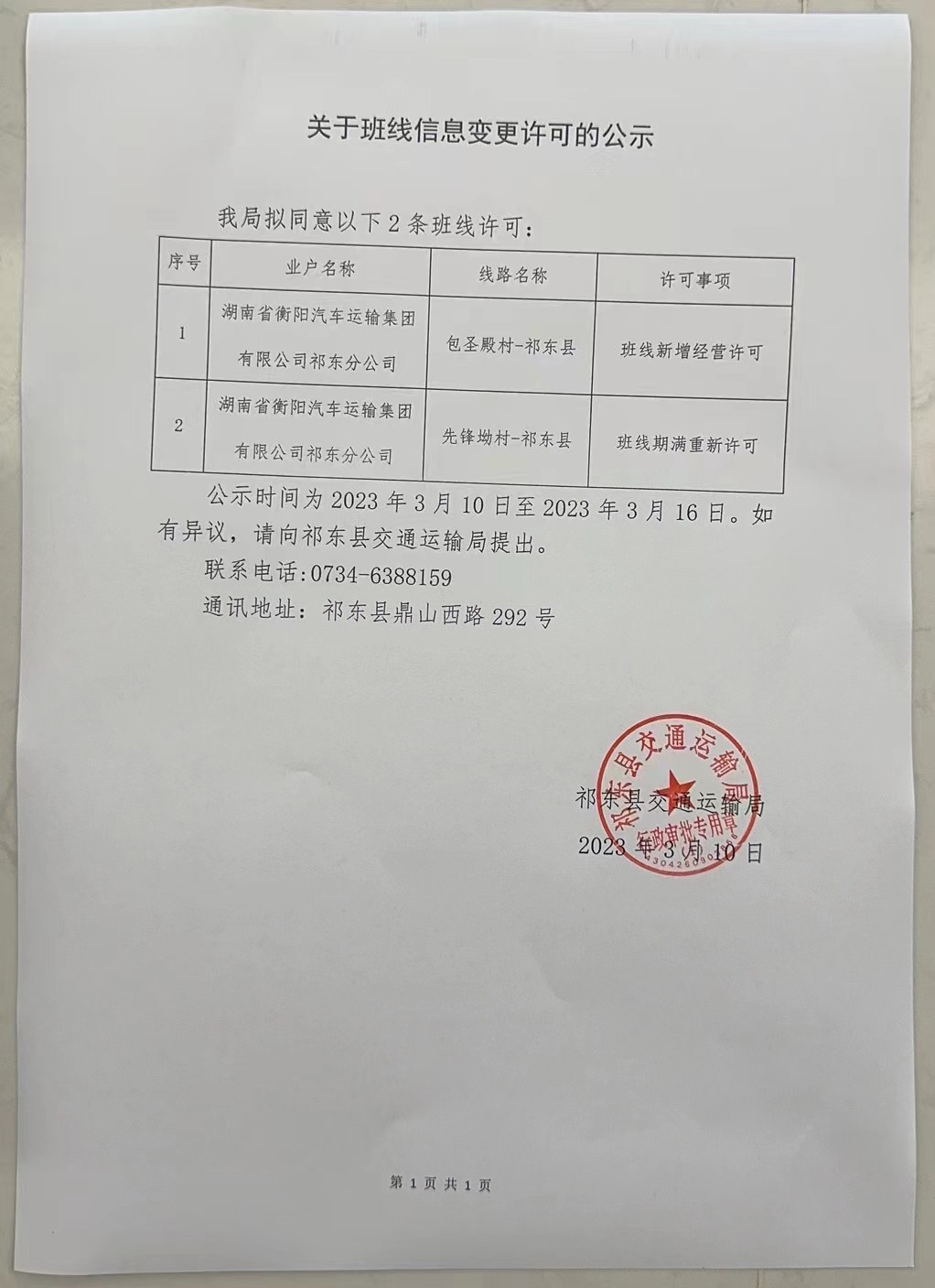 联系电话:0734-6388159公示时间为2023年3月10日至2023年3月16日。如有异议,请向祁东县交通运输局提出。