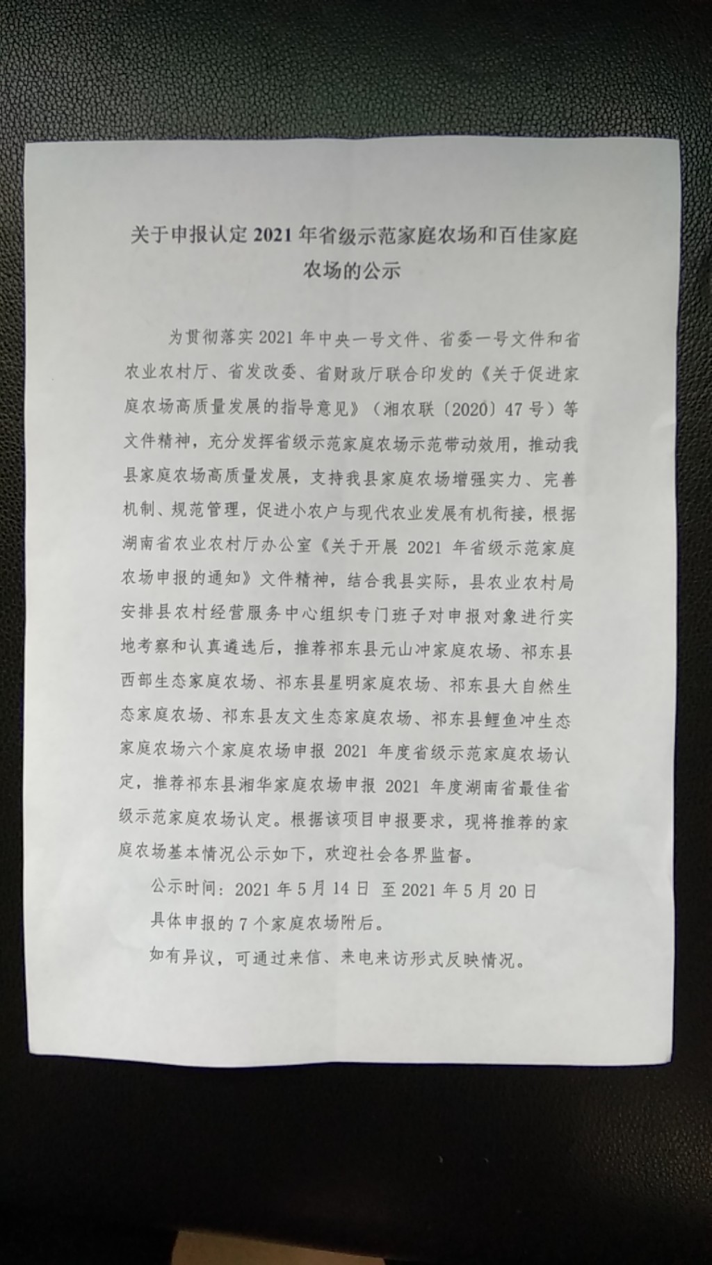 关于申报认定2021年省级示范家庭农场和百佳家庭农场的公示