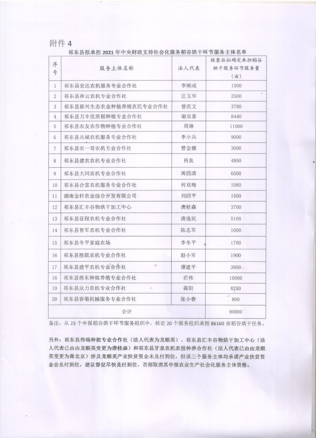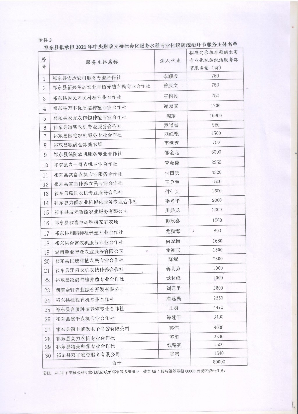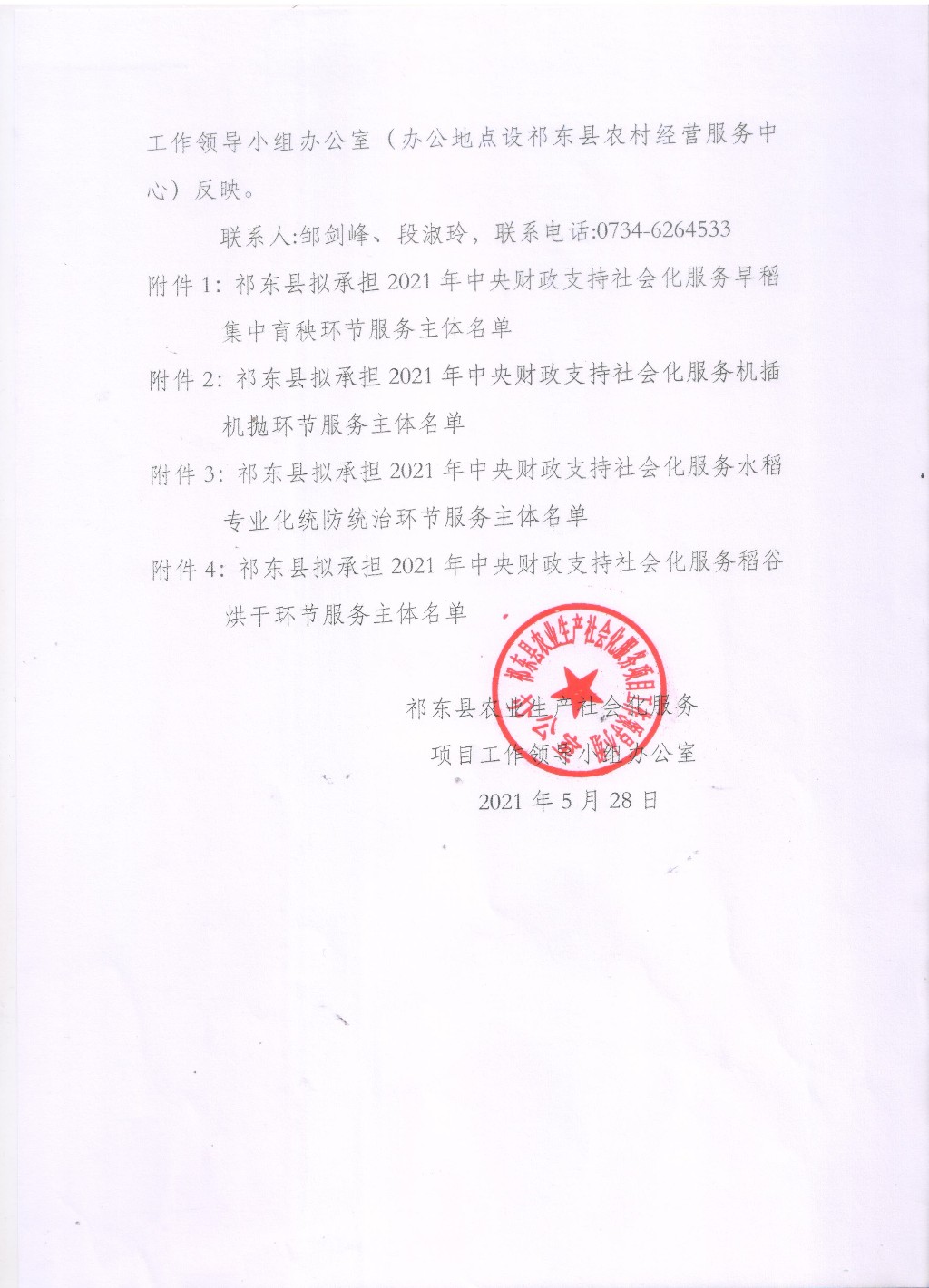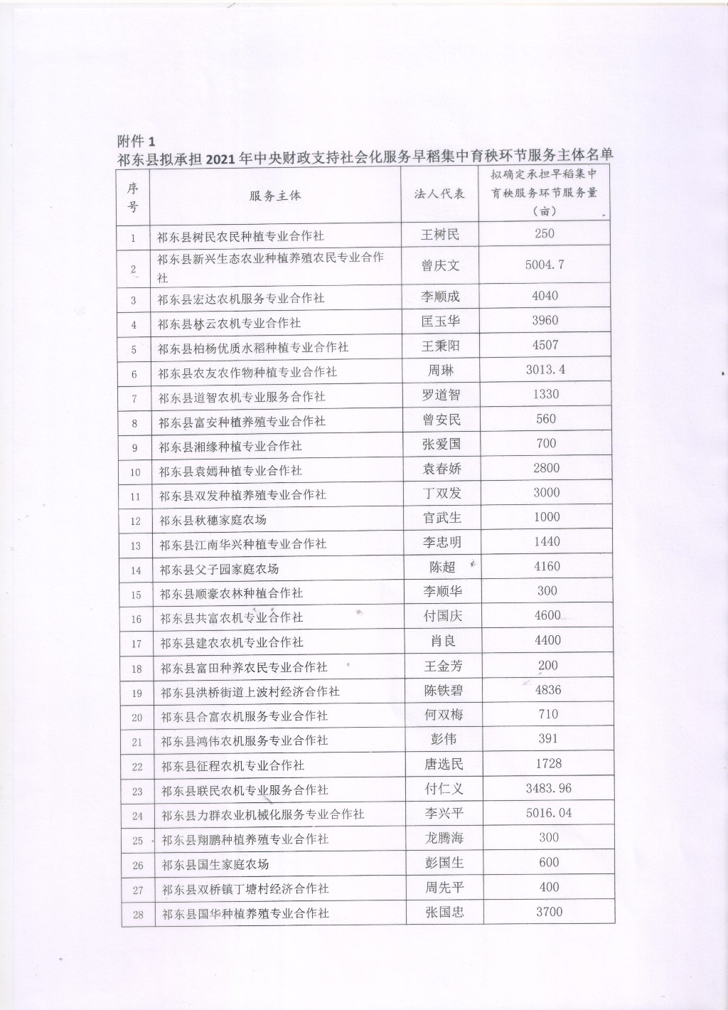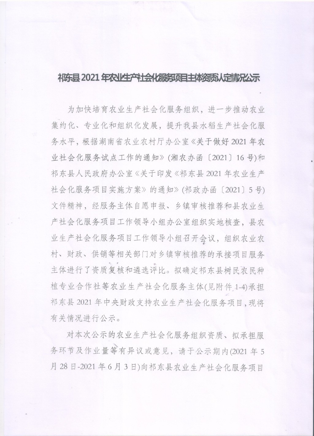 祁东县2021年农业生产社会化服务项目主体资质认定情况公示