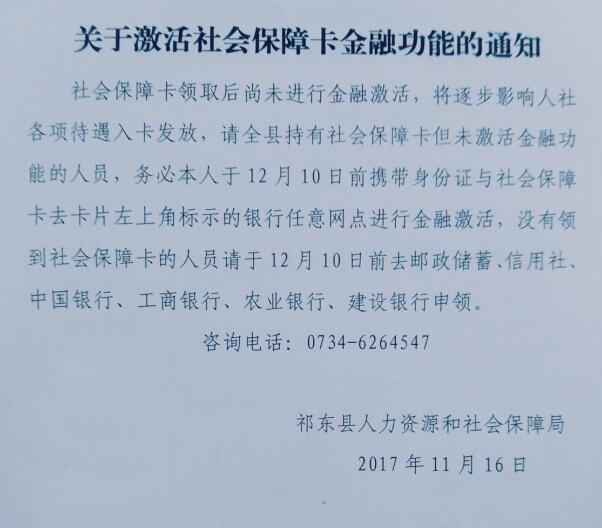 关于激活社会保障卡金融功能的通知