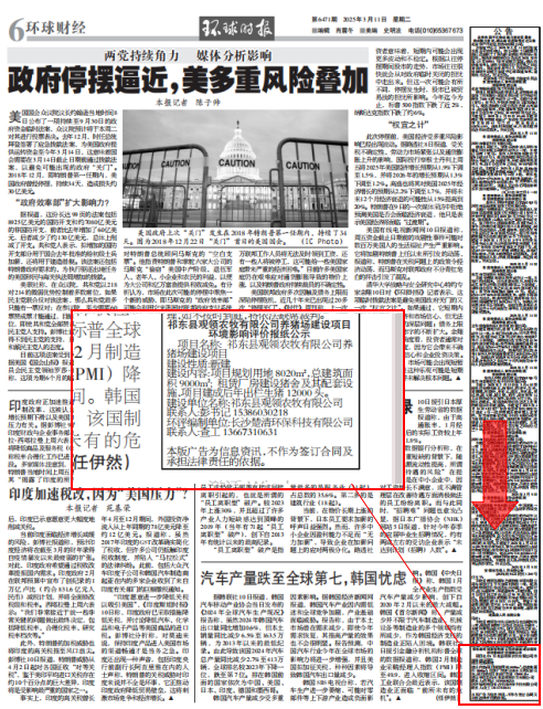 根据《环境影响评价公众参与办法 生态环境部令 第4号》第十一条规定公开的信息的方式除了网络平台公开,还需同时进行报纸公示且在征求意见的10个工作日内。因此,本项目于2025年3月6日及2025年3月11日在环球时报对本项目进行了报纸公示,公示截图见图3所示。报纸公示载体的选取是符合《环境影响评价公众参与办法 生态环境部令 第4号》第十一条的规定。